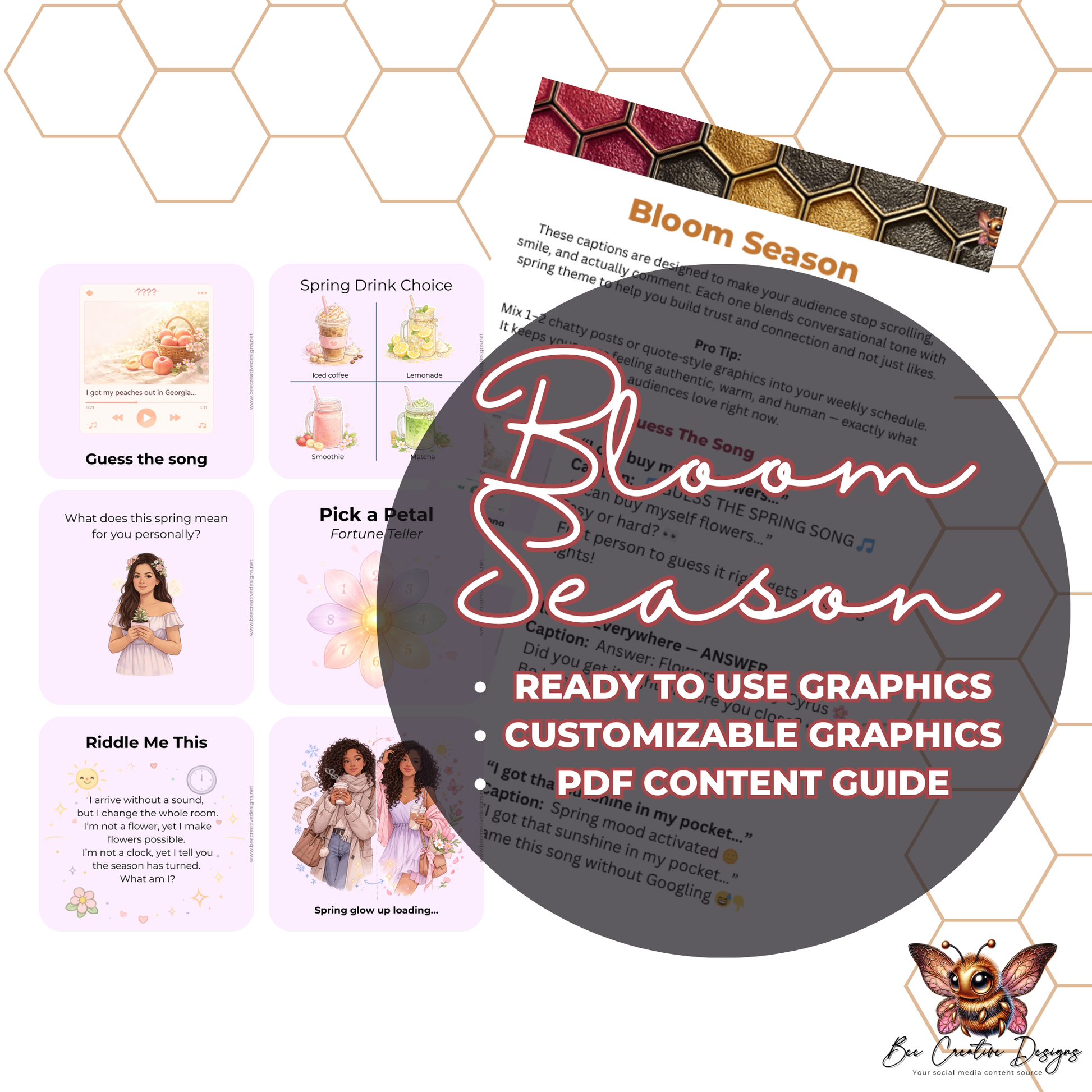 The Bloom Season Content Bundle is a ready-to-use social media content guide filled with interactive spring posts designed to help you spark conversations, increase comments, and keep your page feeling warm, relatable, and active all season long.