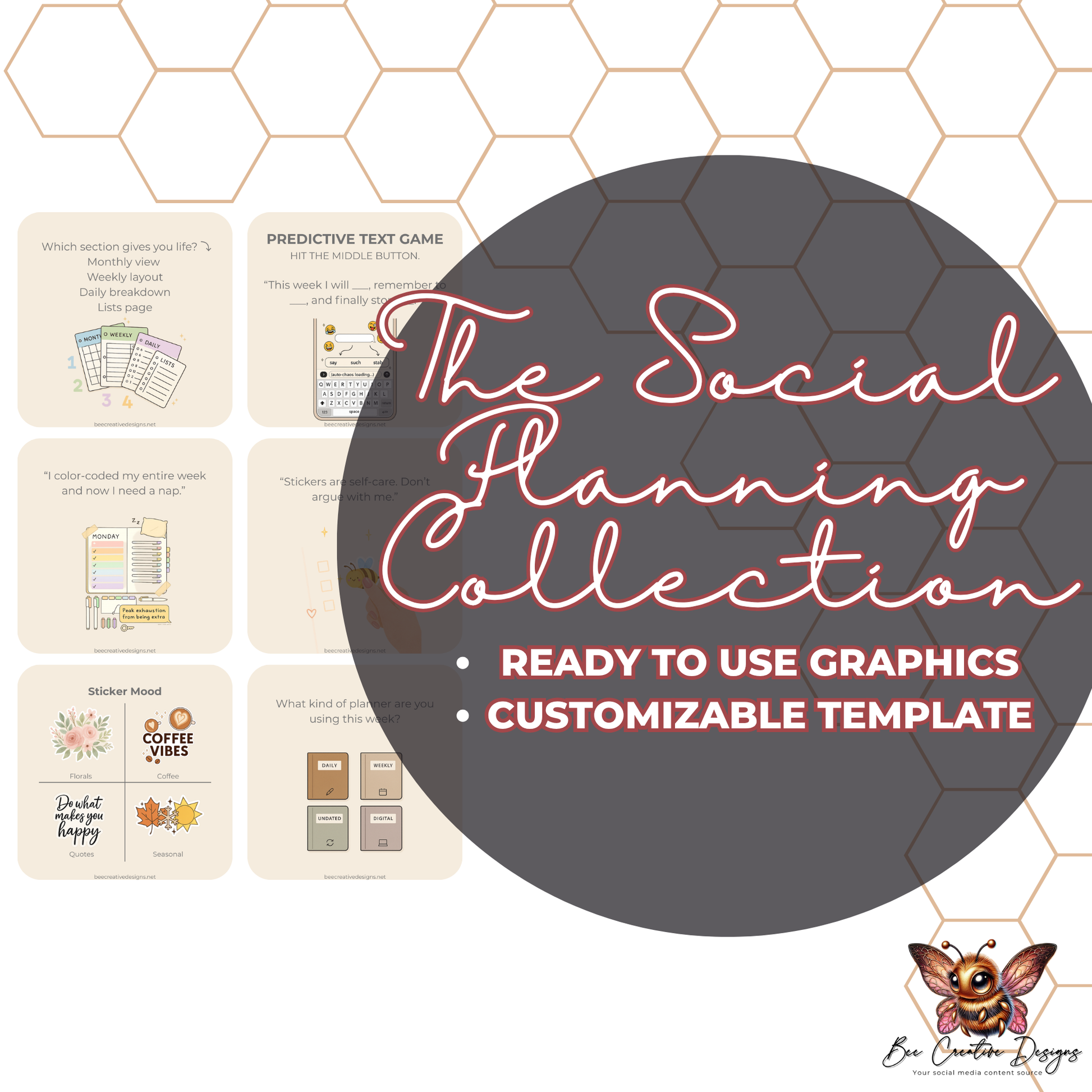 The Social Planning Collection Bundle is a collection of ready-to-post social media games and prompts designed to boost engagement, spark conversations, and keep your planner-loving audience interacting all week long.